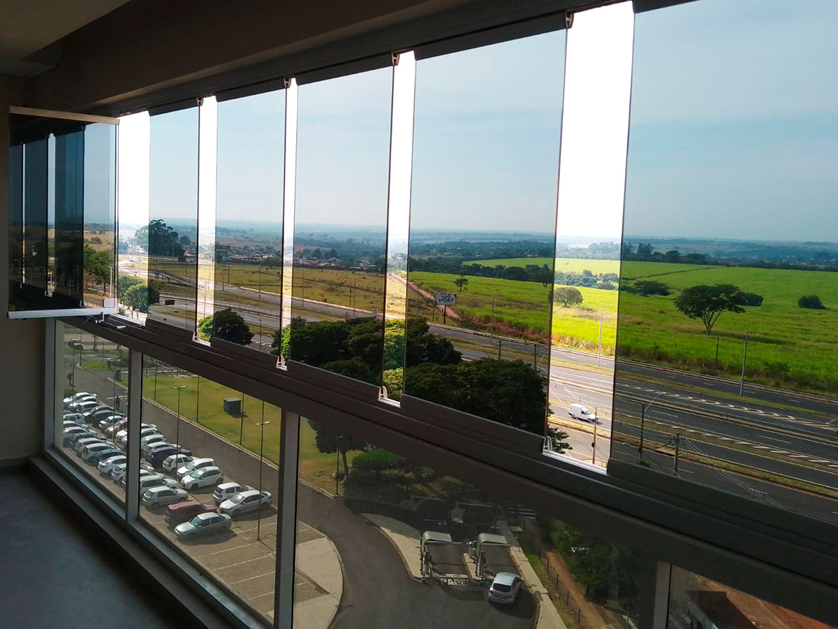 Utilizamos o sistema de roldanas e trilhos de alumínio mais moderno, garantindo abertura total dos painéis (sistema reiki ou similar), permitindo que você aproveite a brisa quando quiser.